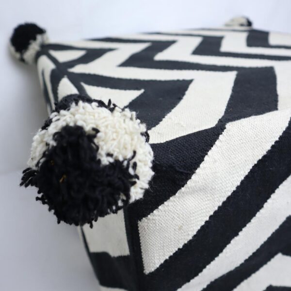Funda de cojín elaborado con técnica de tejido en telar y bordado a mano inspirados en las flores geométricas.